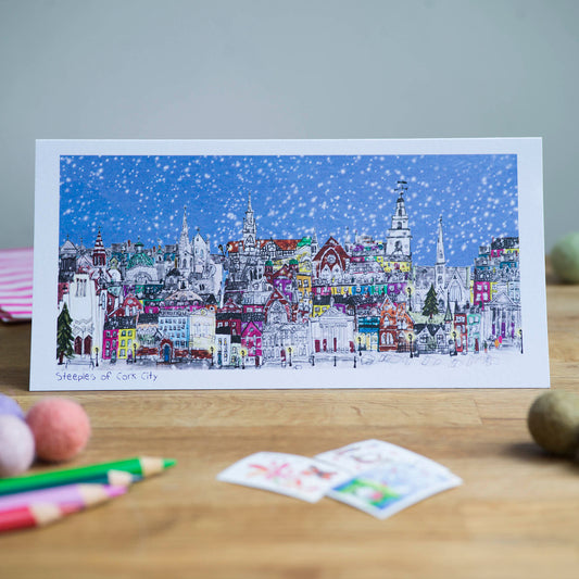 Snowing over Shandon Bells, Cork City, Greeting Card