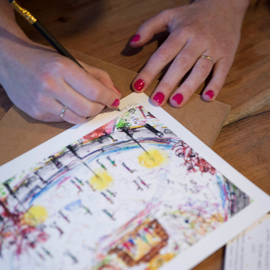 A collection of colourful illustrated greeting cards for all occasions. Printed by a...